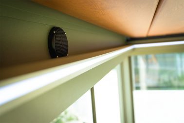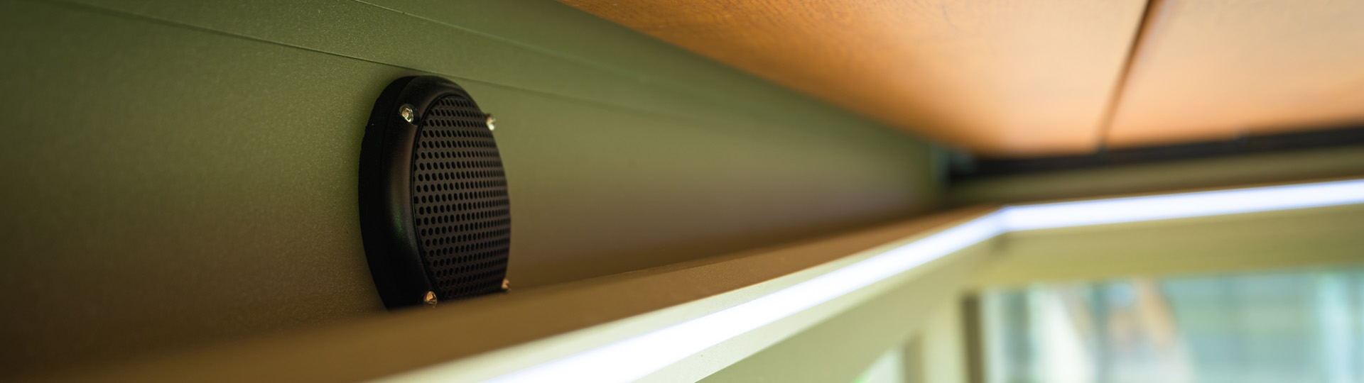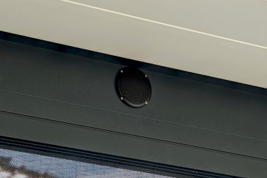 Frisse lucht, de natuur dichtbij, ontspanningsmomenten of ontmoetingen met dierbaren … deze momenten kunnen nog leuker worden met muziek. Twee luidsprekers discreet gemonteerd in de profielen van de constructie zullen de esthetiek van de constructie niet verstoren en je toestaan te genieten van je favoriete geluiden op het terras. Ze zijn speciaal ontworpen voor buiteninstallatie, bestand tegen vocht, stof en UV-stralen.