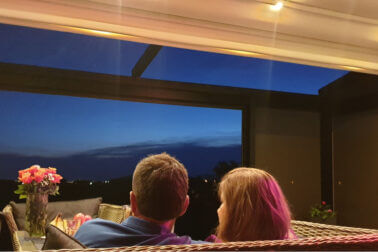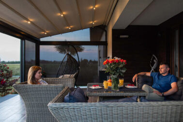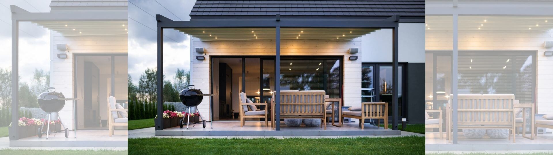 Elegancy is een klassiek pergolamodel dat bescherming biedt tegen zon en regen. De drielaagse stof voorkomt dat het terras oververhit raakt, terwijl het schuine dak efficiënt water afvoert.